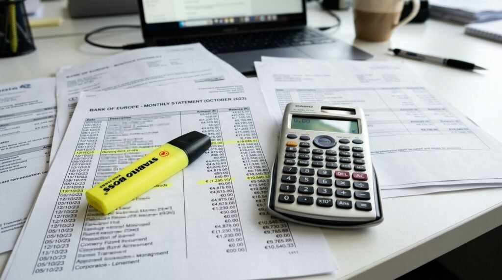 | 8 | Bank statement (last 6 months) | Showing minimum €6,079 — aim for €8,000+ |